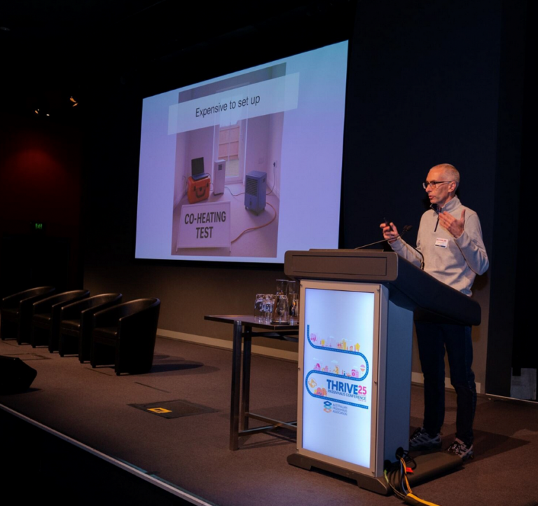 Harley started with some clever slides and questions for the audience that showed the need for accurate and understandable markers of performance, to help stimulate informed demand for homes with better thermal performance.