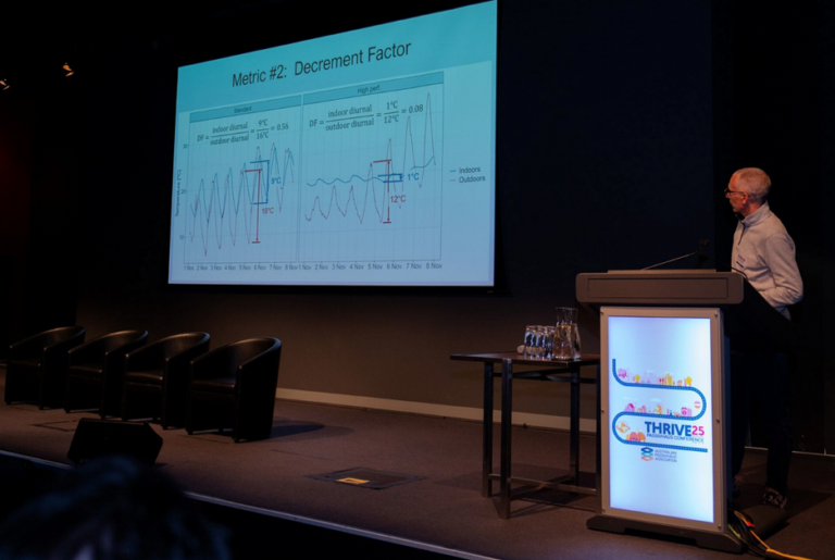 Of course I’m going to love a presentation that included differential equations! Fellow engineers Cameron Munro (Passive Analytics) and Harley Truong (Logikhaus) put their heads together shortly before the conference to envisage what form a new as-built measure for the performance of a building’s thermal envelope might take—the equivalent of a blower door test for testing airtightness. This is a great research question as knowing how much heat a building is leaking through its envelope is an important measure of performance and comfort.
