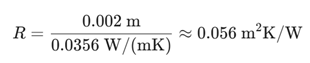 From the data sheet, the thermal conductivity of this product is 0.035 W/(mK) with a recommended thickness for use as a thermal break of 2000 microns, or 2mm. Using the standard formula for thermal resistance (R = thickness / conductivity), the conductive insulation benefit is: