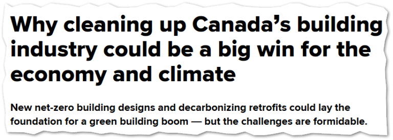 We often look to other countries for examples and lessons learned in the push towards sustainable buildings. A recent article in Canada’s National Observer (July 2024) highlights the significant challenge and opportunity facing Canada in transforming its building industry to meet net-zero targets by 2050.