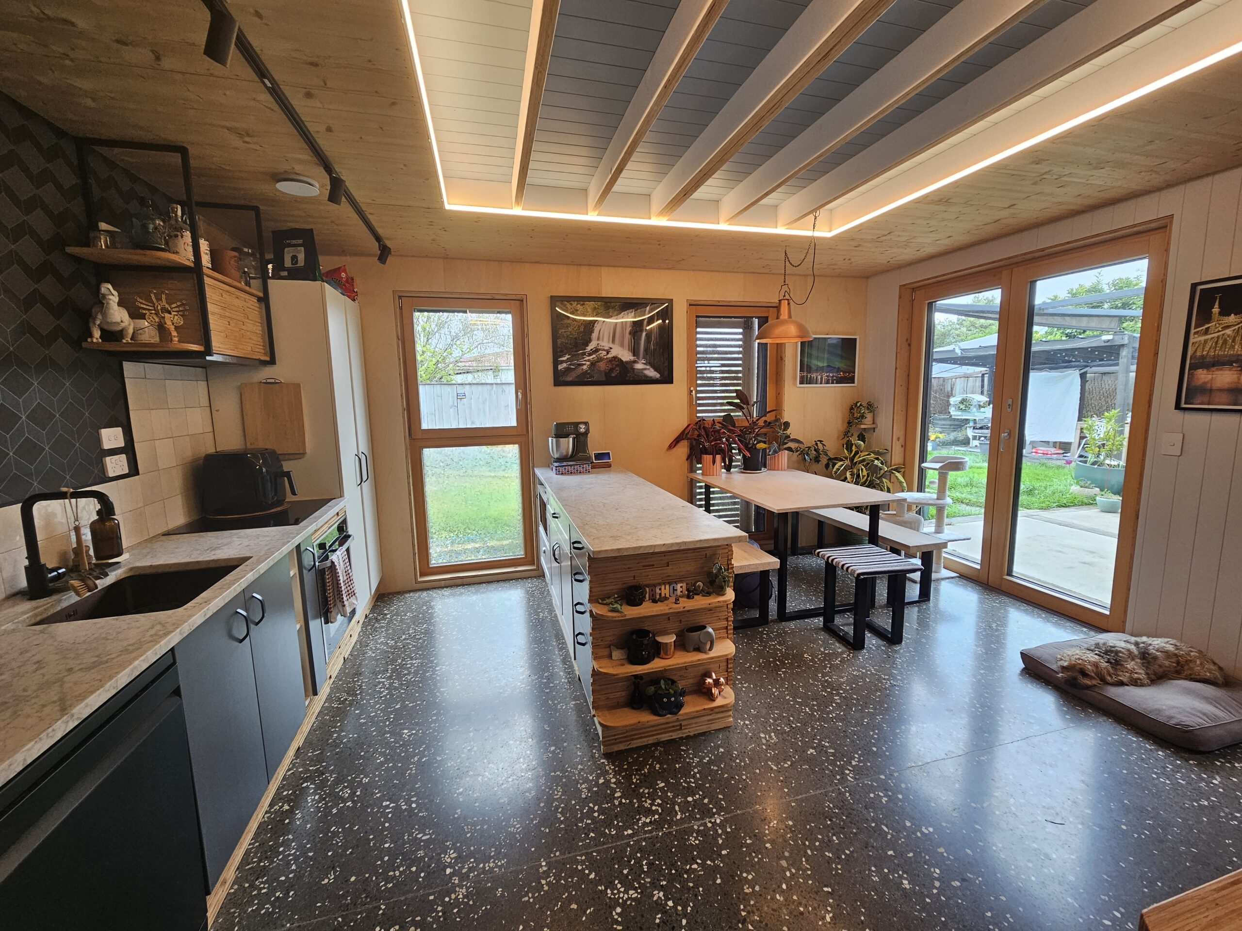 In winter, the home easily maintains a comfortable 22°C. Even when outside temperatures drop to -3°C overnight, the internal temperature only dips by a degree or two. The owners manage their winter heating by running their heat pump for just one hour in the evening—strategically timed to coincide with their electricity provider’s “free hour of power.”