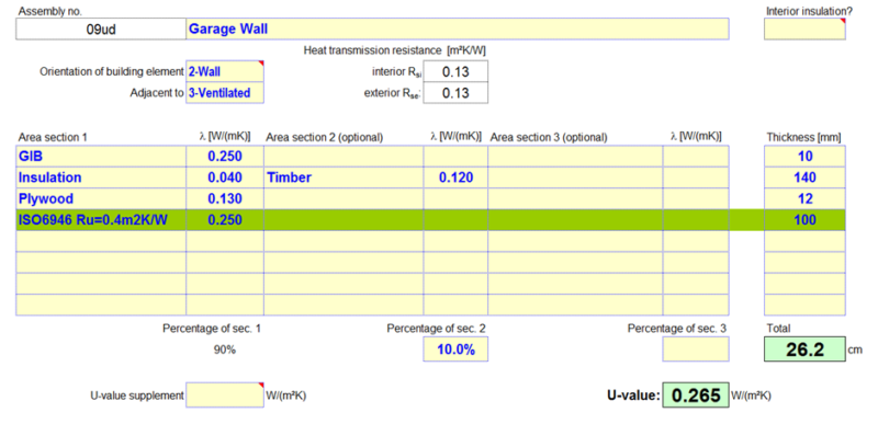 Once the Ru value has been calculated a specific U-value in PHPP can be setup and the additional Ru entered in the U-value table as another layer using a fictional thickness and the resultant Thermal Conductivity. For Example if Ru was 0.4 m2K/W and a fictional thickness of 100mm or 0.1m was used the Thermal conductivity would be 0.1m/0.4m2K/W or 0.25 W/mK.