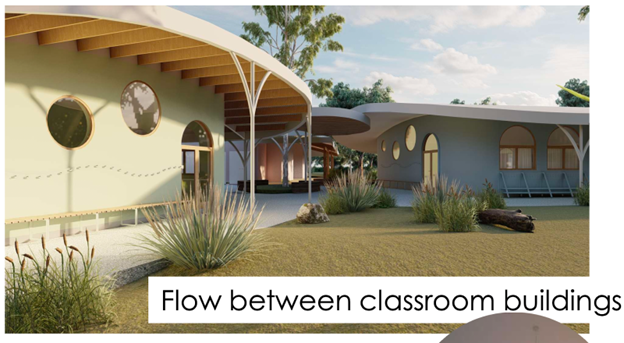 From early discussions, the school leadership made their aspirations clear: they wanted buildings that are nurturing, light-filled, and inspired by nature [that emphasise] organic, expressive forms … [they want to] prioritise natural materials, curving shapes and avoid harsh geometric lines, [with an aim] to create buildings that are harmonious with the environment and beneficial to those who inhabit them.