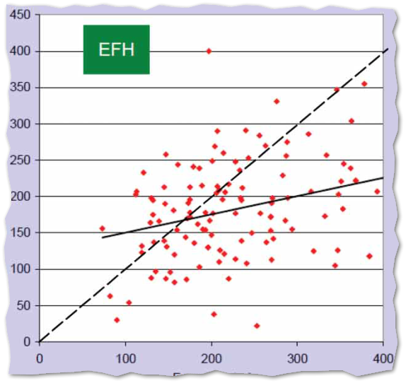 Figure 1 from Sunikka-Blank & Galvin (2012) shows measured energy consumption on the vertical axis and calculated energy consumption on the horizontal. The solid black line is the averages.
